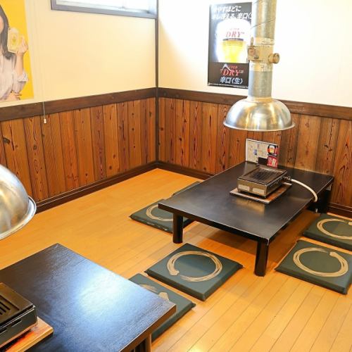 【座敷席や半個室】ファミリーやサラリーマンに最適な落ち着いた空間です。足を伸ばしてリラックスしながらお食事を楽しむことができます。プライベート感のある半個室で、ゆったりとした時間を過ごしながら、こだわりの料理を堪能してください。